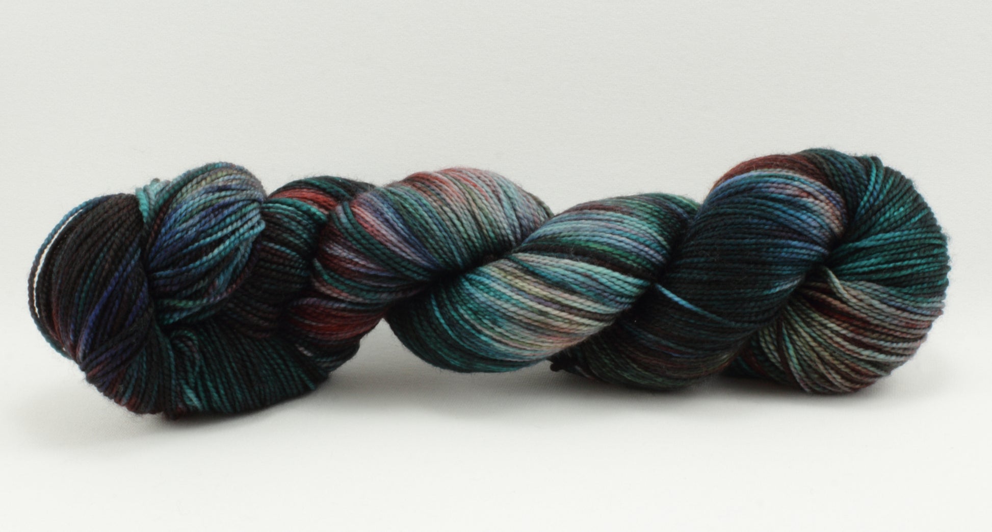 Due to the spontaneous nature of this dye method, skeins can vary greatly. The swatch pictured was knit in the round on size US3 needles.